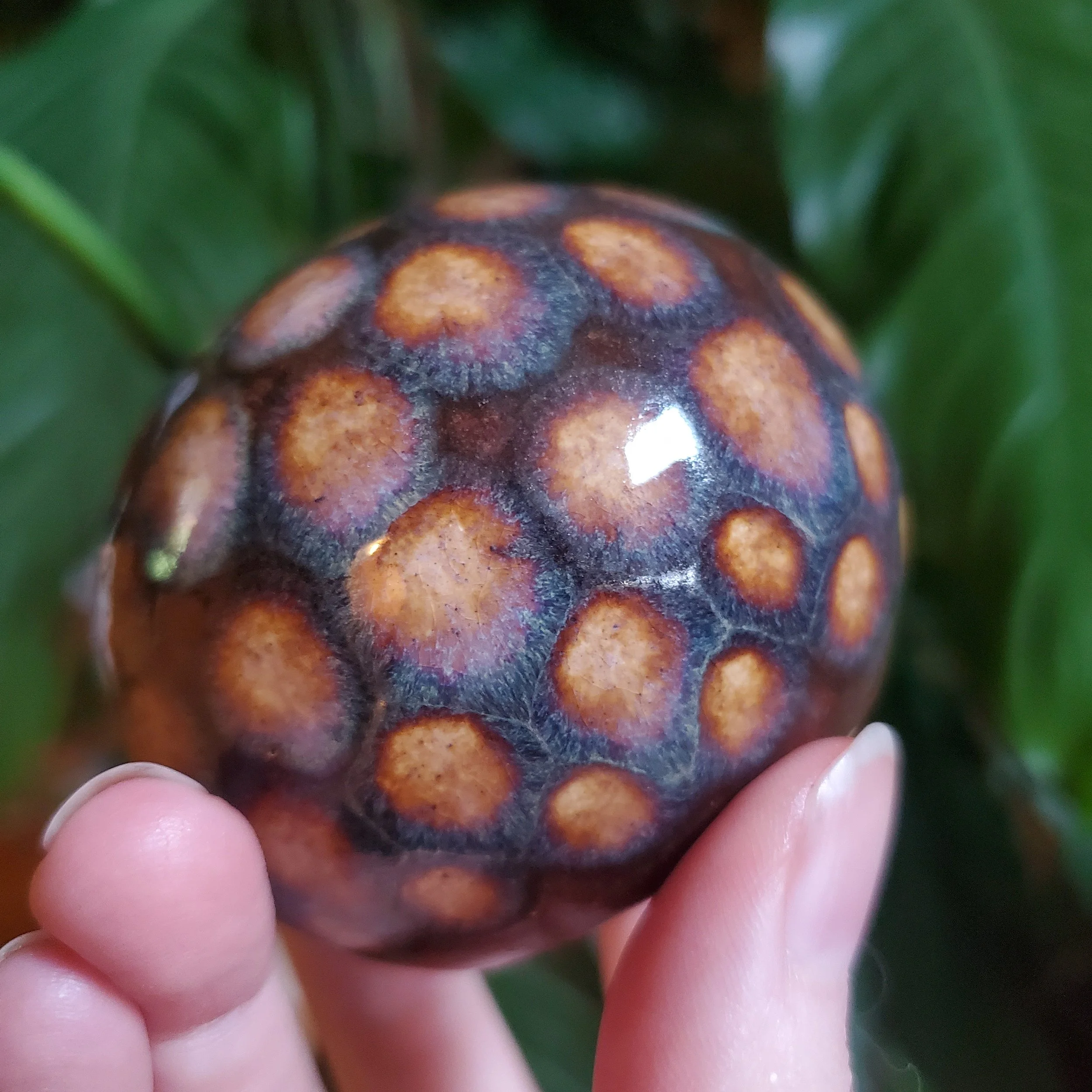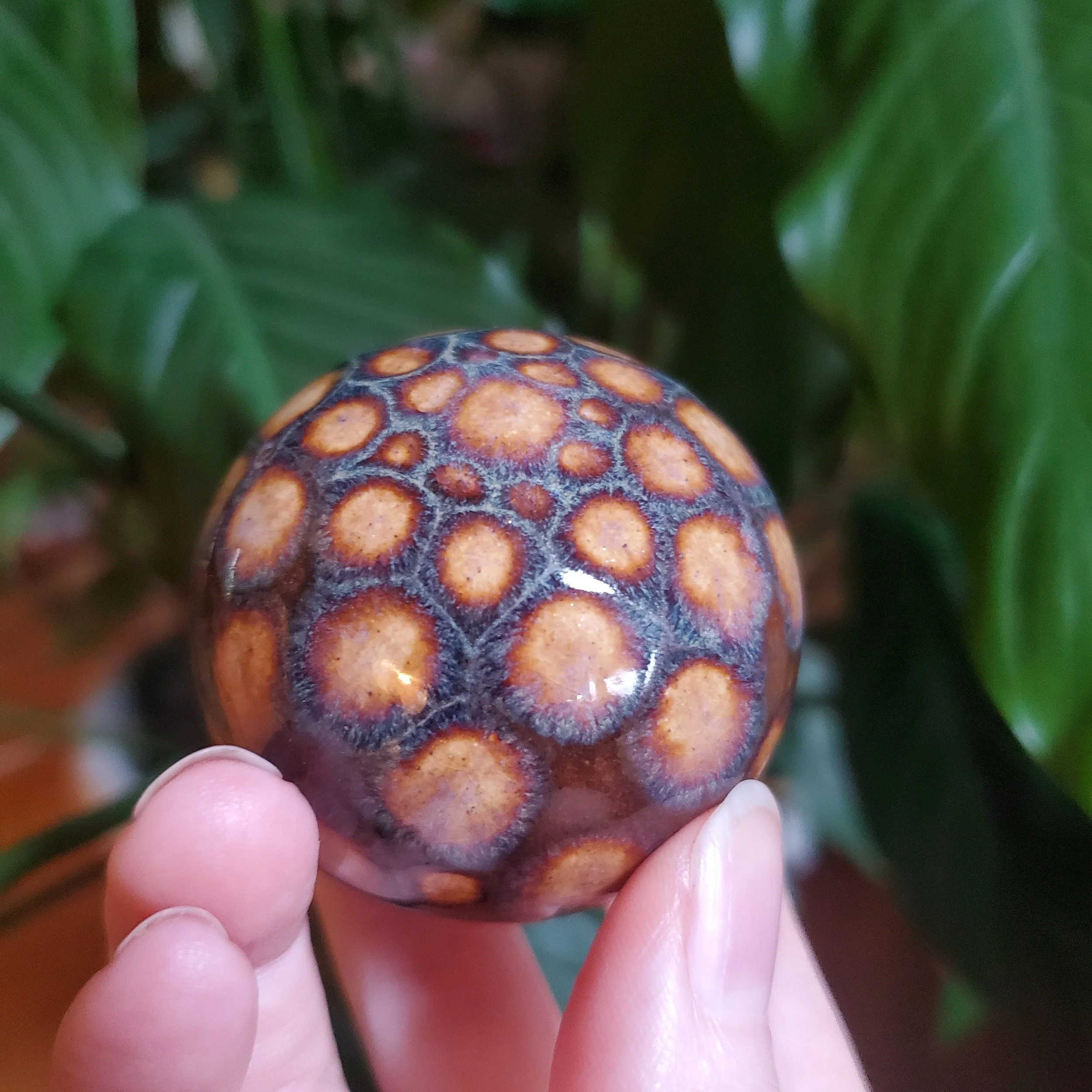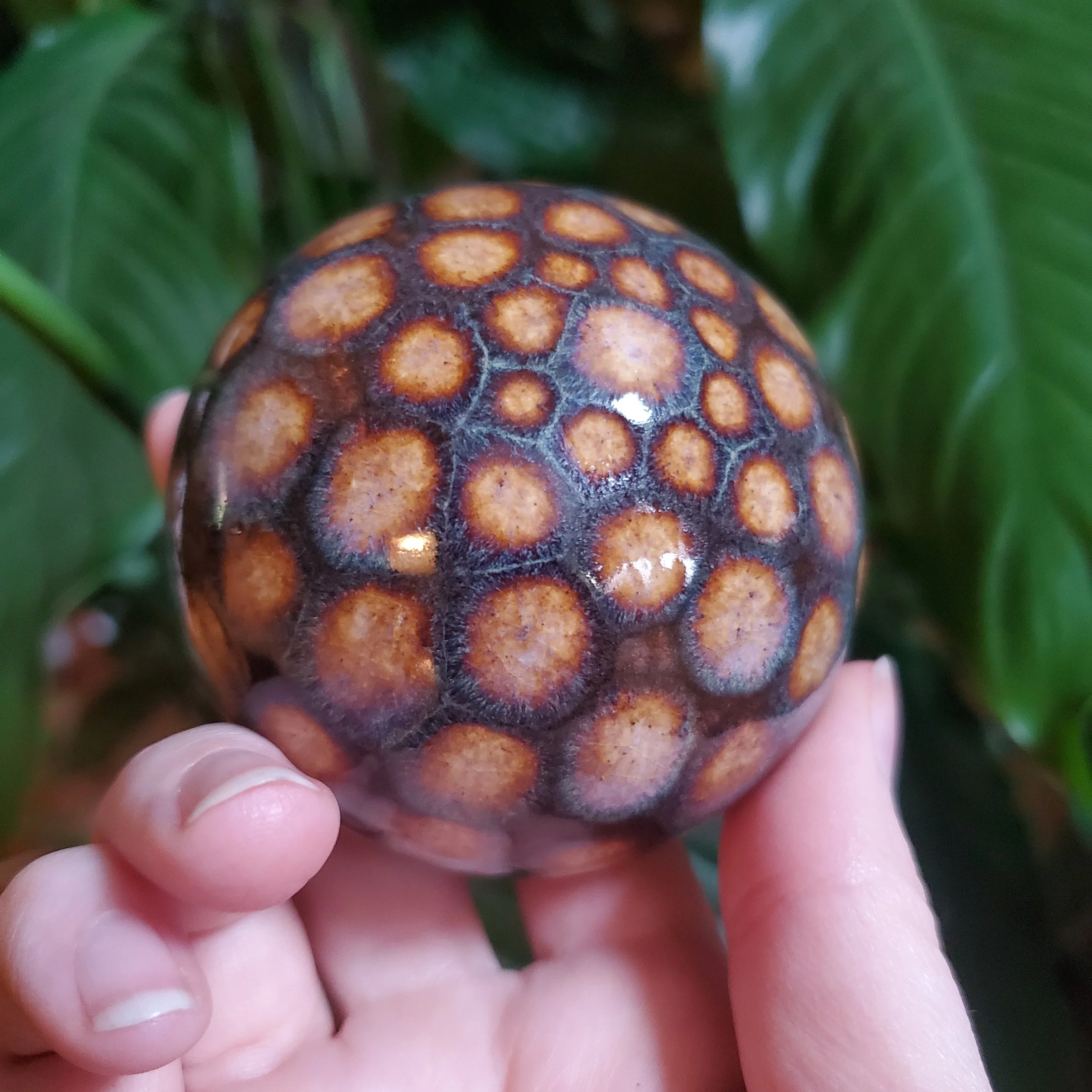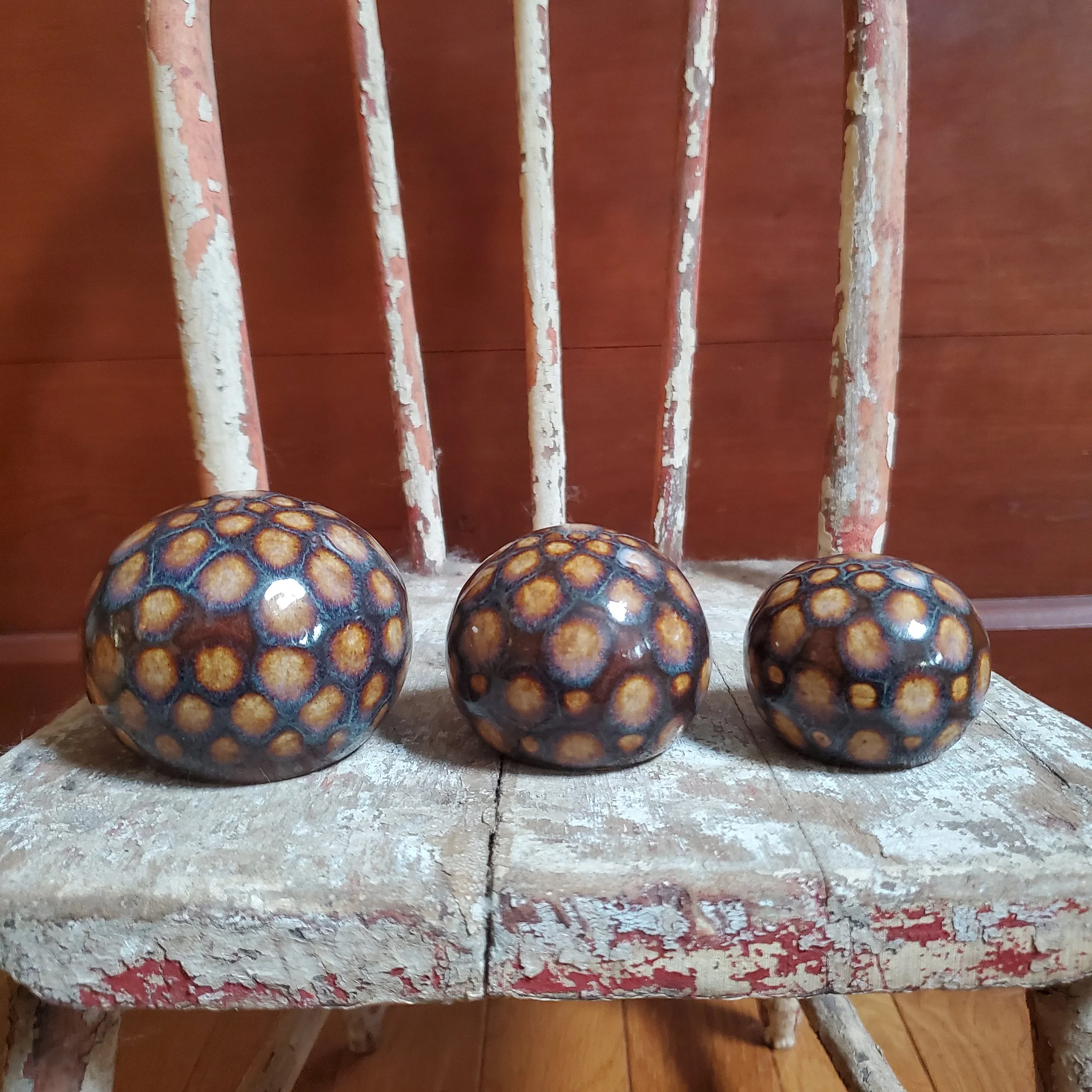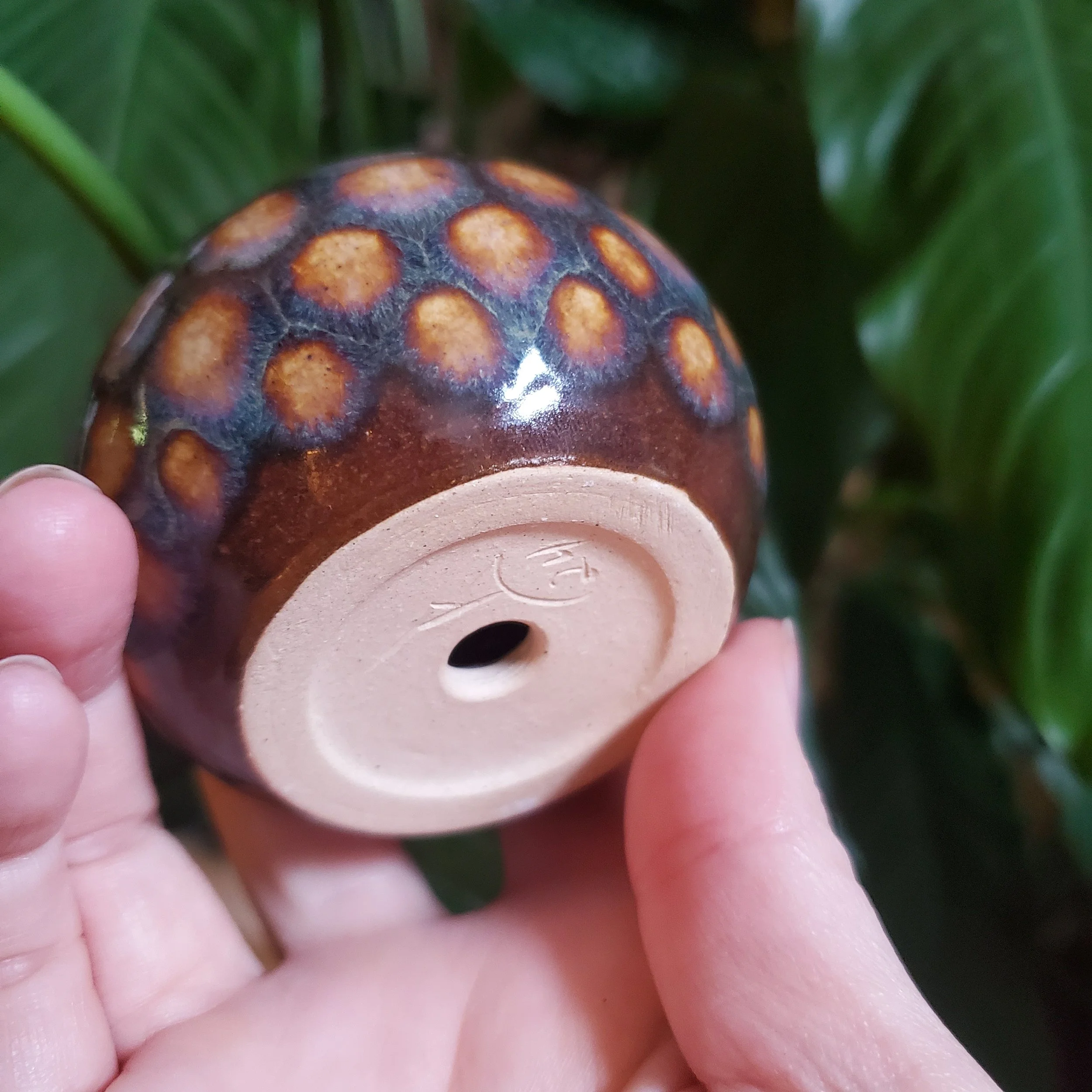 My marimos don’t wiggle in the sunlight, but they do shine thanks to their durable cone 6 glazes. They are designed to sit in the pot with your plant, but are just as happy to sit next to them or wherever you choose to display your marimo. If they get dirty all they require is a wipe down with soap and water, but they are also dishwasher safe.